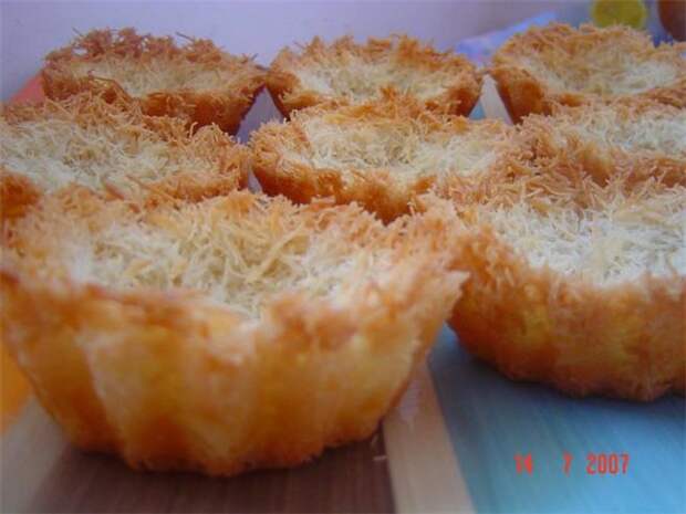 Кадаиф может быть основой для сладких и несладких блюд.Это всего лишь очень-очень тонкая вермишель.Наполнителем, может быть все,что угодно:фрукты,овощи,сыр.